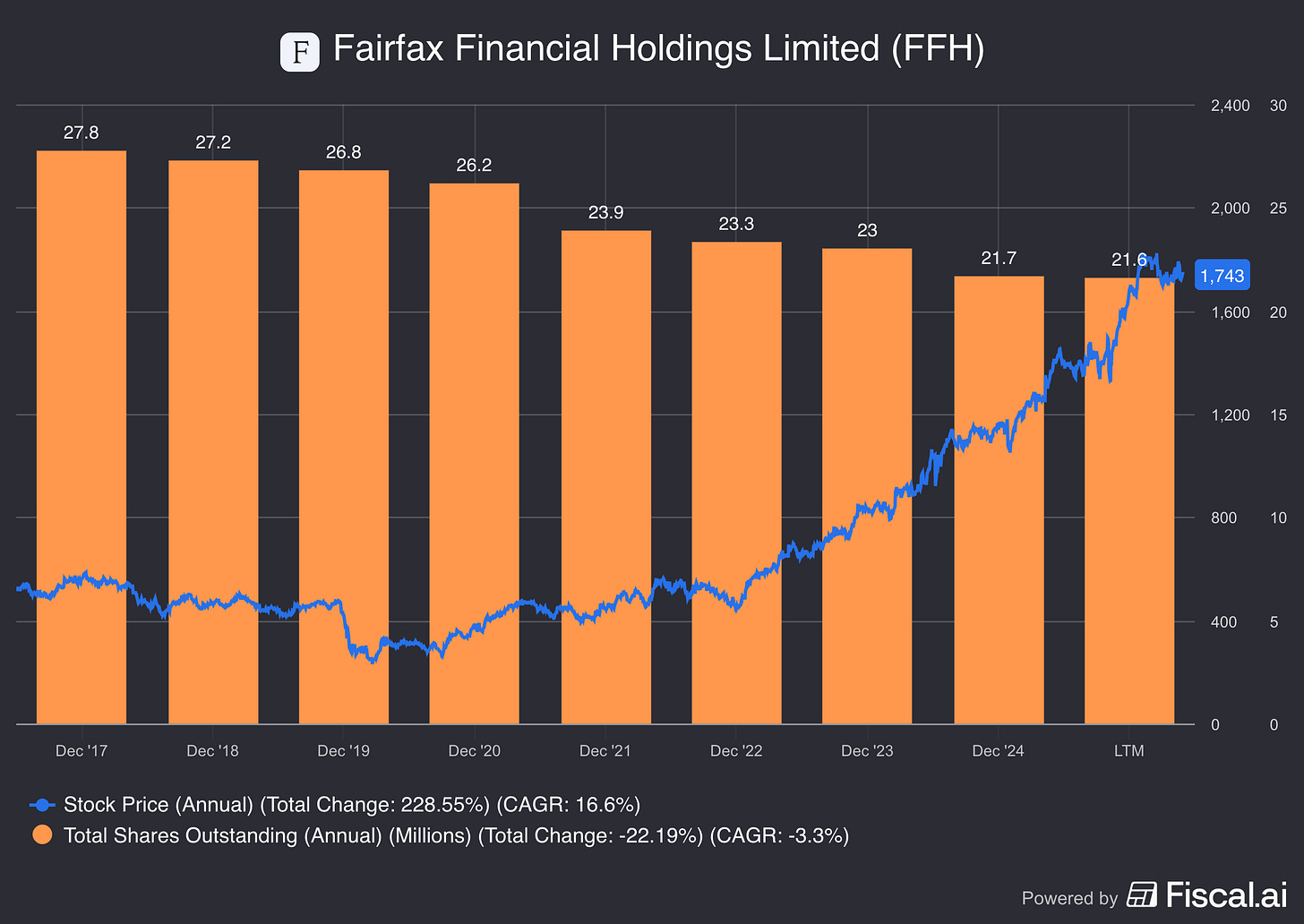 De laatste jaren kocht Watsa ook veel eigen aandelen in. Sindsdien is de koers sterk gestegen.