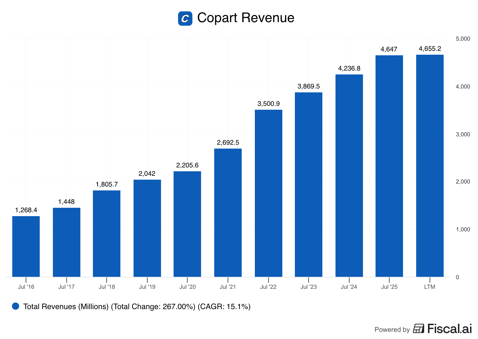 Dankzij hen verkoopt Copart meer dan 3 miljoen auto’s per jaar, haalt het enorme marges en heeft het bijna geen schulden.