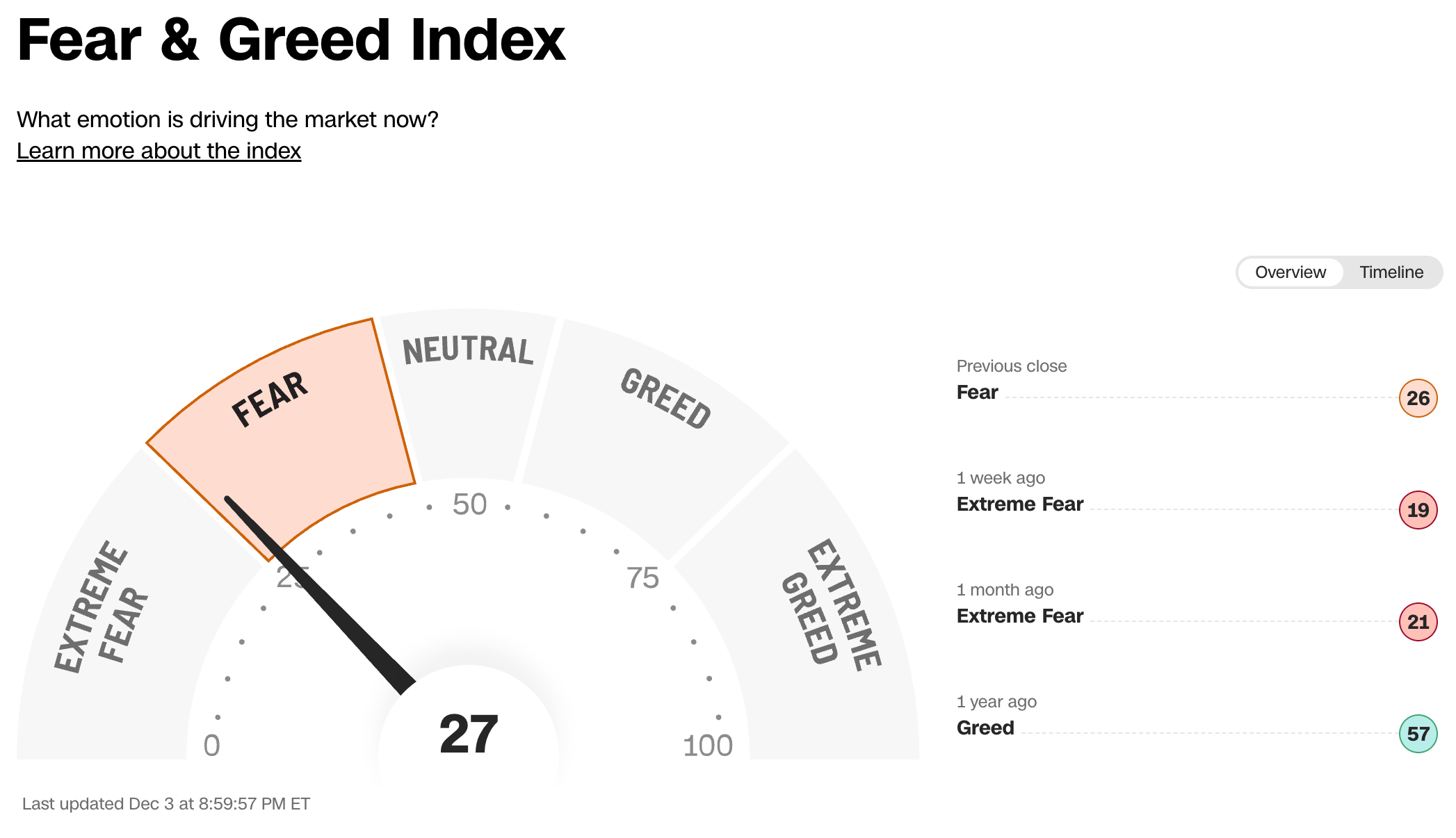 Beleggers zijn vandaag pessimistisch volgens de Fear & Greed Index: