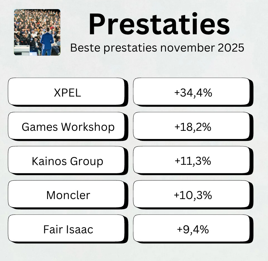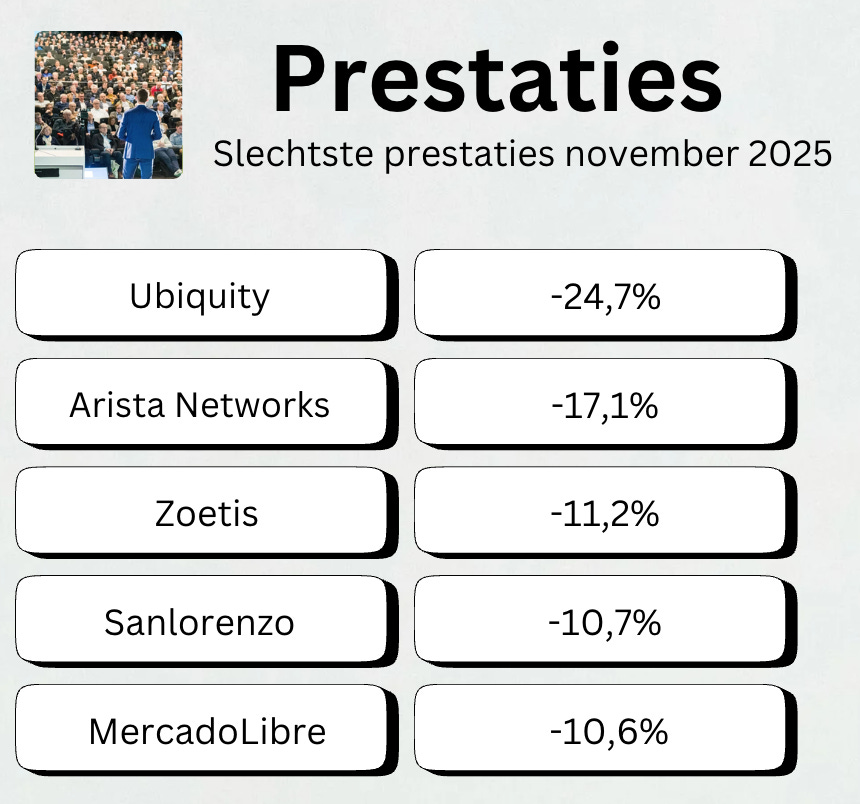 Dit overzicht laat je de beste en slechtste aandelen van afgelopen maand zien.