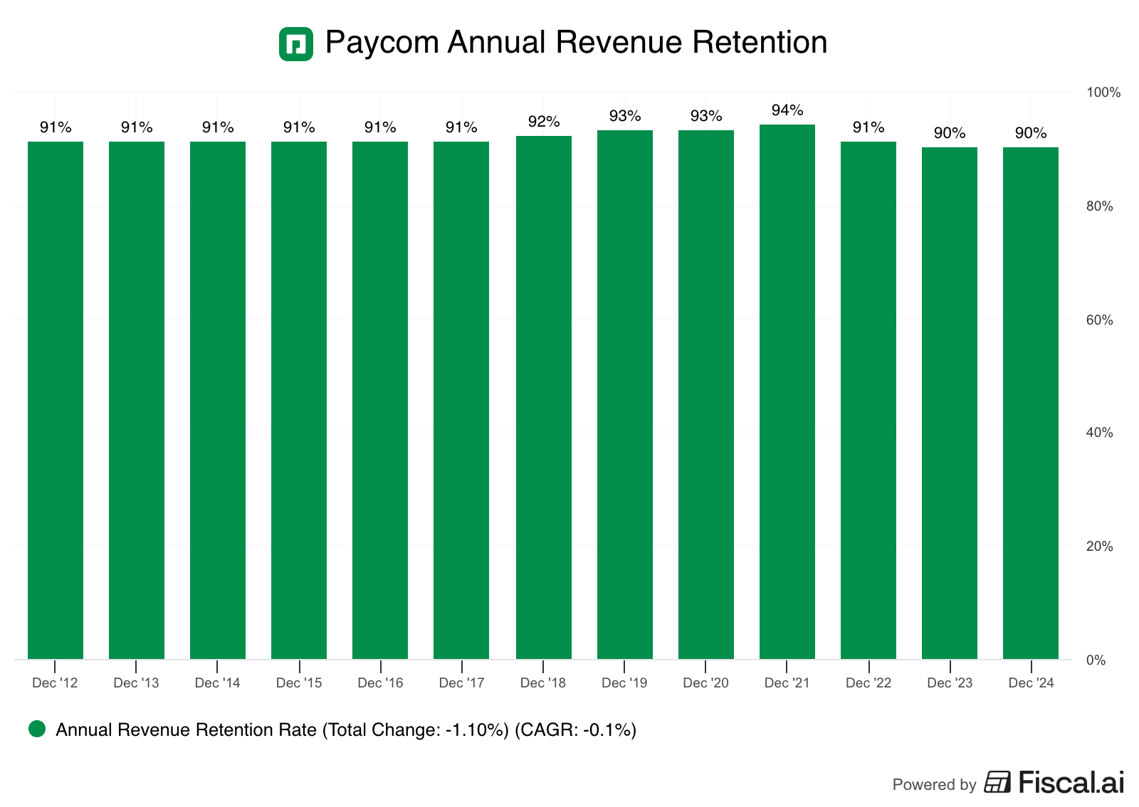 Bovendien is overstappen moeilijk en duur. Daardoor zijn klanten loyaal aan Paycom.