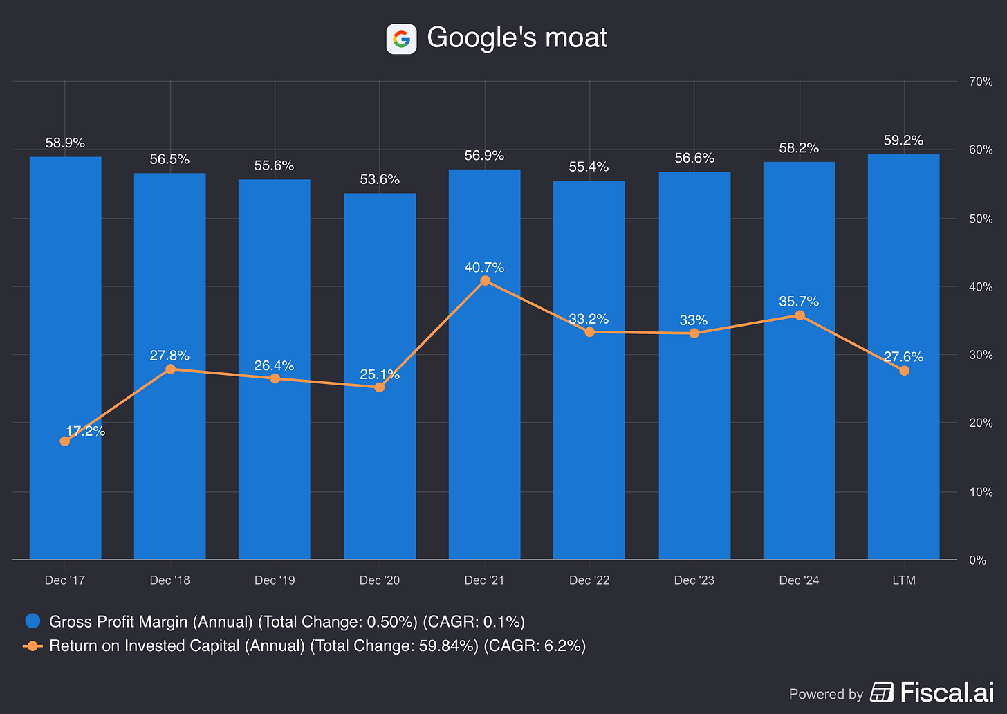 Bedrijven met een duurzaam competitief voordeel worden vaak gekenmerkt door een hoge brutowinstmarge en ROIC: