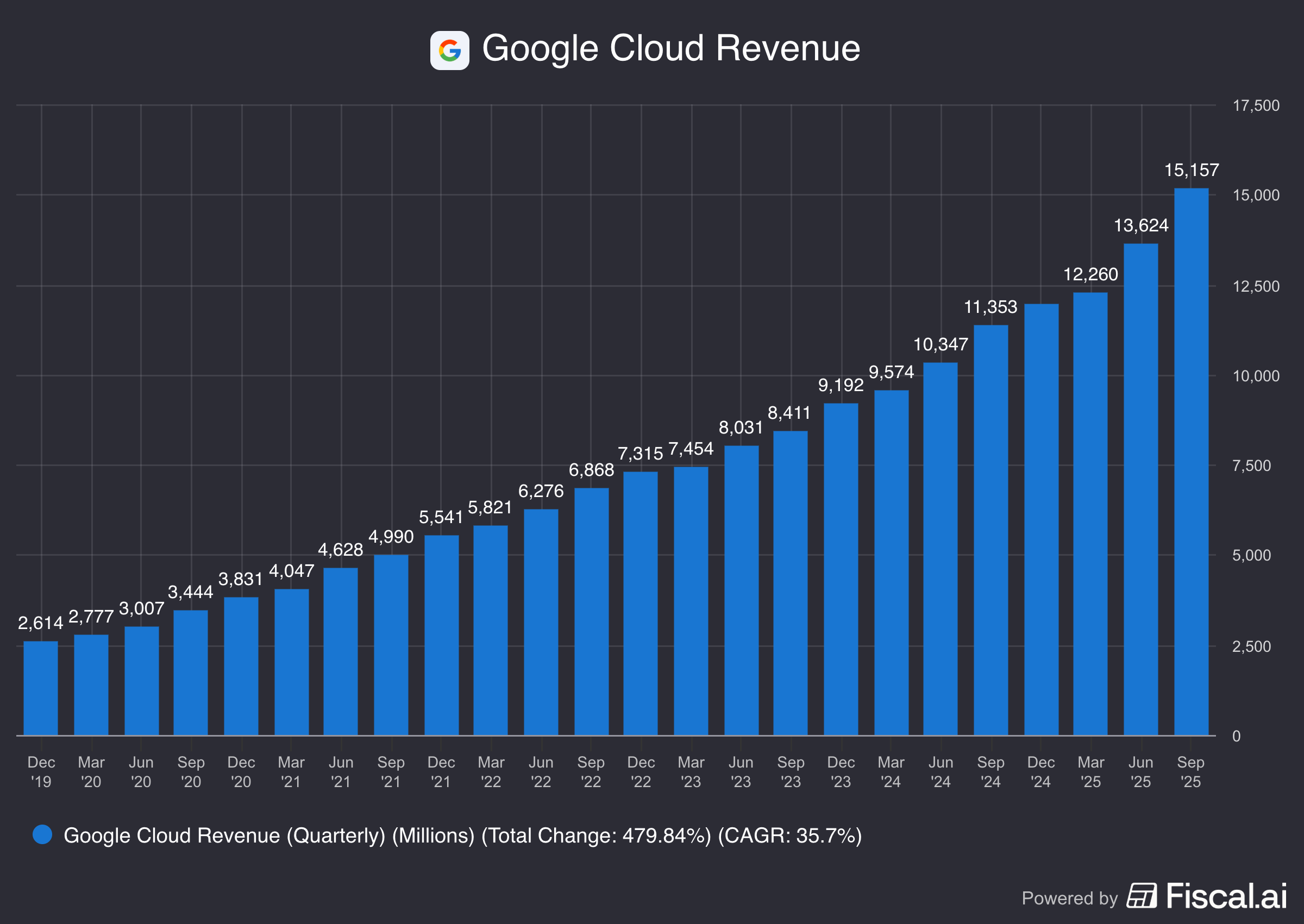 Vooral Google Cloud valt op. Dat is momenteel de échte groeimotor van het bedrijf: