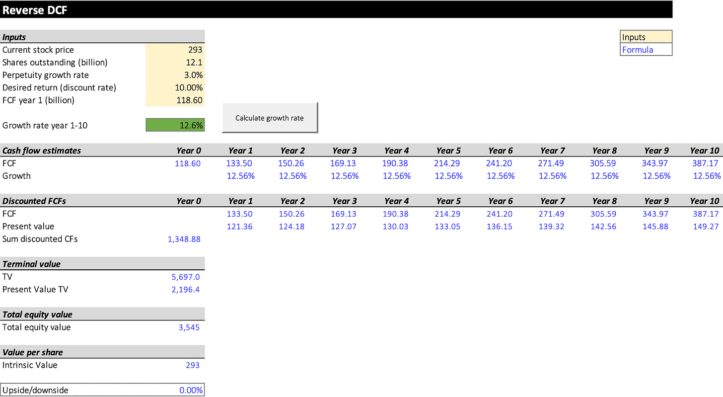 Je kan hier meer leren over een omgekeerde DCF: Reverse DCF 101.