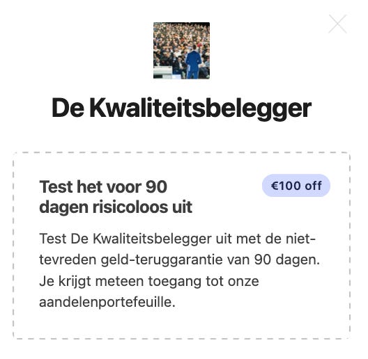 Egkachai Angkawanich: "De nieuwsbrief is tot nu toe mijn beste investering. Bedankt, Pieter! 🐝"Ryan Daly: "Ik heb veel beleggingsblaadjes geprobeerd, maar dit is degene die als thuis voelt. Serieuze, conservatieve beleggers, geen speculanten. De kracht van de samengestelde interest is de sleutel. Ik wou dat De Kwaliteitsbelegger al 20 jaar eerder bestond!"Hyejoo Kim: "Pieter, je vrijgevigheid, harde werk en toewijding aan Partners zijn geweldig. Dit is de allereerste nieuwsbrief die ik ben toegetreden, en ik ben echt dankbaar voor alles wat ik van je leer."Interesse?