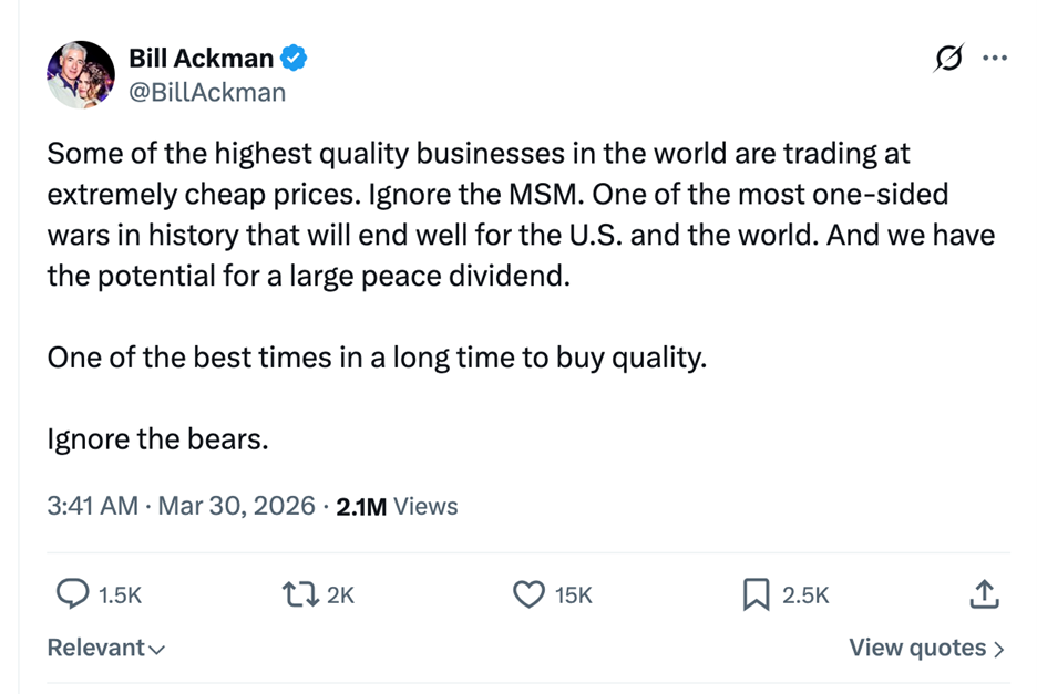 Zoals Bill Ackman eerder deze week al zei: het is een fantastisch moment om kwaliteitsaandelen te kopen.
